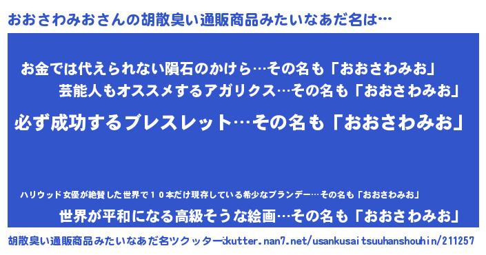 | 欧米人風あだ名 | 『アンジェラ・おおさわみお』 |