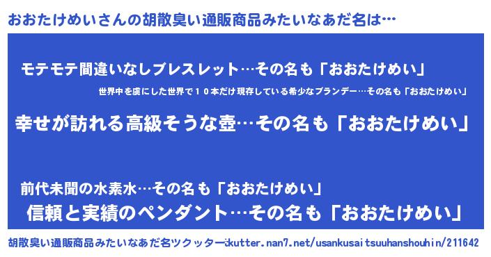 | 意味不明あだ名 | 『おおたけめいフォーエバー』 |
