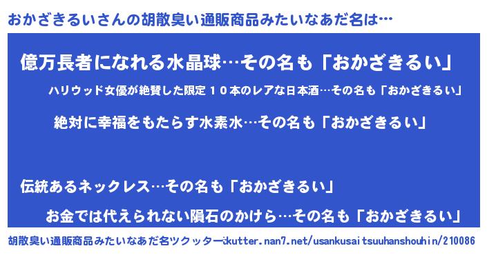 | 欧米人風あだ名 | 『アンジェラ・おかざきるい』 |
