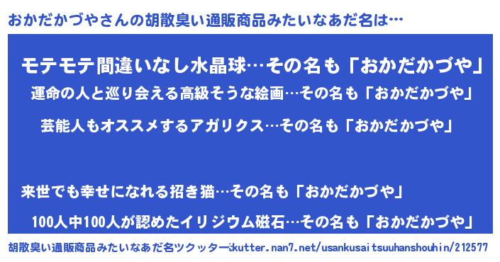 | 肩書あだ名 | 『おかだかづや艦長』『おかだかづや閣下』 |