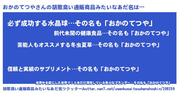 | 意味不明あだ名 | 『自称おかのてつや』 |