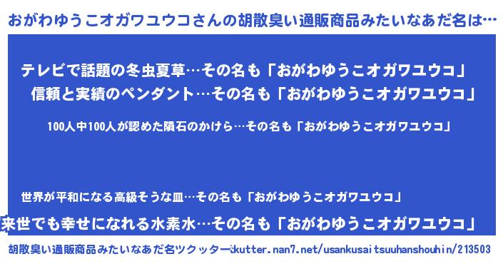| ヘコむあだ名 | 『おがわゆうこオガワユウコ(遠い目)』 |
