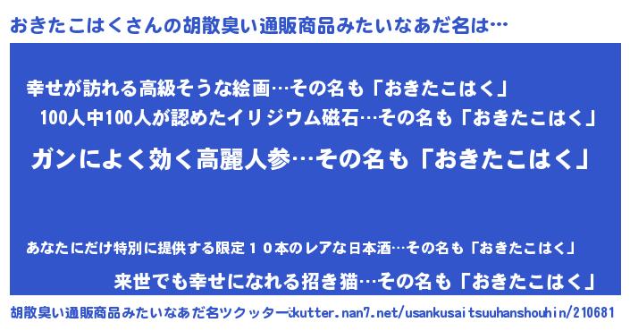 | 女子向けラノベタイトル風あだ名 | 『おきたこはくアンティーク』 |