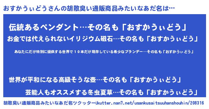 | 意味不明あだ名 | 『住所不定無職おすかうぃどう(79歳)』 |