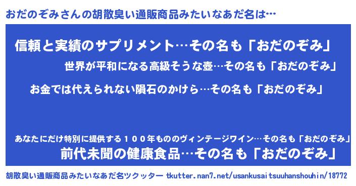 | 欧米人風あだ名 | 『ダニエルおだのぞみ』 |