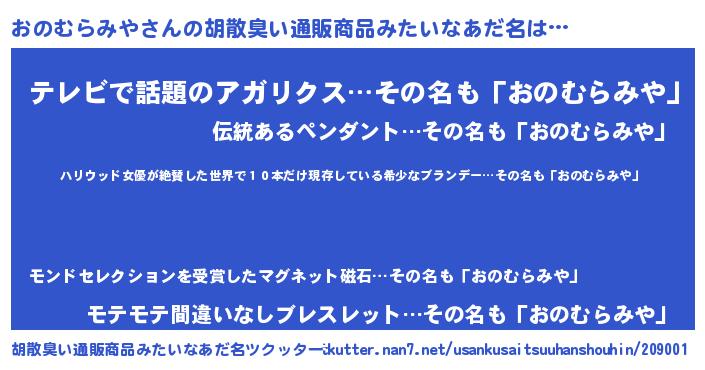 | 意味不明あだ名 | 『住所不定無職おのむらみや(74歳)』 |