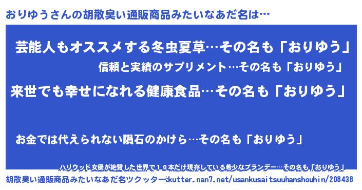 | ヘコむあだ名 | 『おりゆう(苦笑)』『おりっちょ』 |