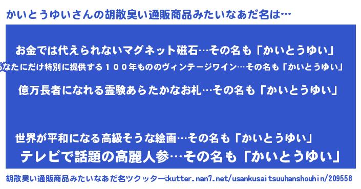| 恥ずかしいあだ名 | 『プリティーかいとうゆい』『かいっちょ』 |