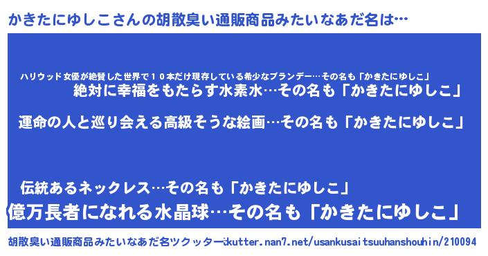 | 意味不明あだ名 | 『かきたにゆしこフォーエバー』 |