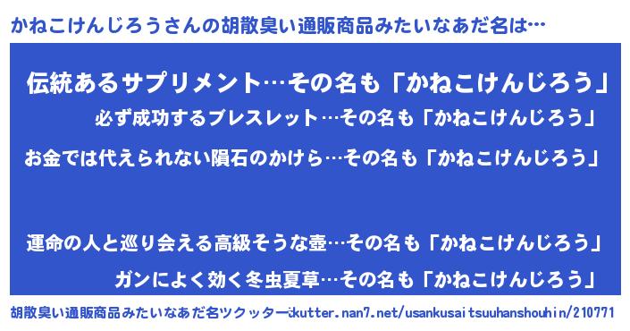 | 意味不明あだ名 | 『眠気覚ましガムかねこけんじろう味』 |
