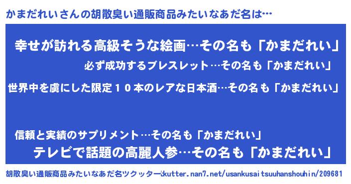 かまだれいさんの胡散臭い通販商品みたいなあだ名をツクッター!