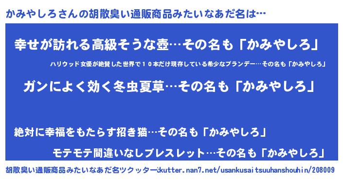 | 意味不明あだ名 | 『自称かみやしろ』『ペロリンかみやしろ』 |