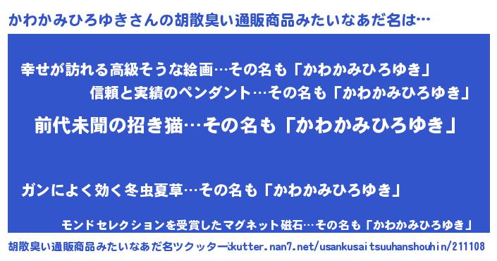 | 意味不明あだ名 | 『ニラ科かわかみひろゆき属』 |