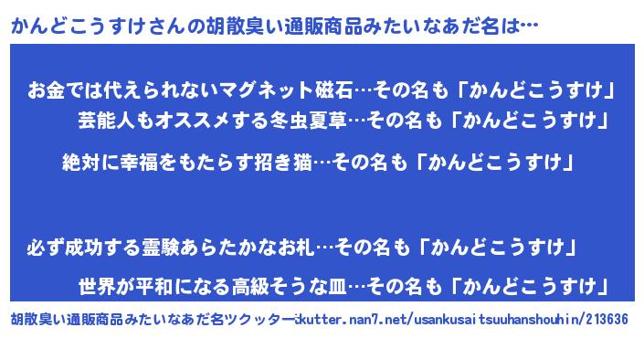 | 意味不明あだ名 | 『永久保存かんどこうすけ』 |