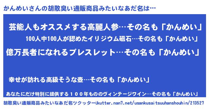 | 意味不明あだ名 | 『ペロリンかんめい』『自称かんめい』 |