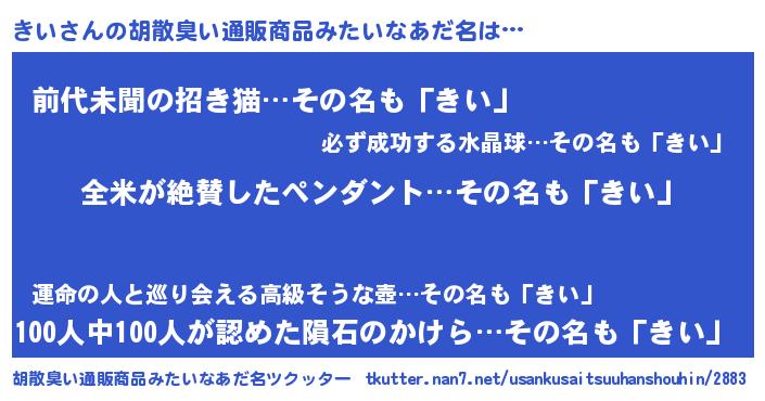 | 意味不明あだ名 | 『つくし科きい属』『とにかく怪しいきい』 |