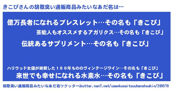 | 男性向けラノベタイトル風あだ名 | 『きこぴの嫁は女の子じゃないと思った?』 |