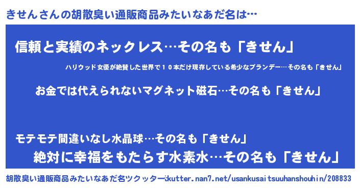 | ヘコむあだ名 | 『きせ太郎』『きせん(笑)』『牛乳』 |