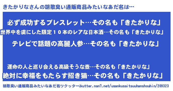 きたかりなさんの胡散臭い通販商品みたいなあだ名をツクッター!