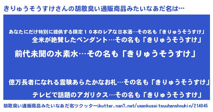 | 意味不明あだ名 | 『永久保存きりゅうそうすけ』 |