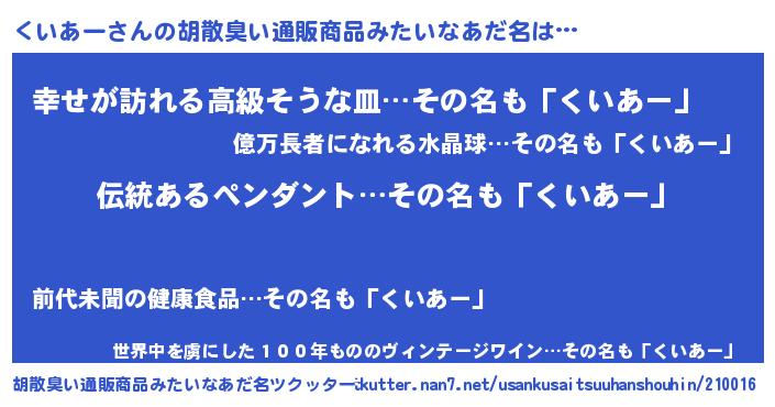 | 意味不明あだ名 | 『とにかく怪しいくいあー』 |