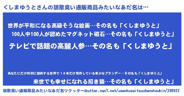 | ヘコむあだ名 | 『豆乳』『くしまゆうと(小並感)』 |