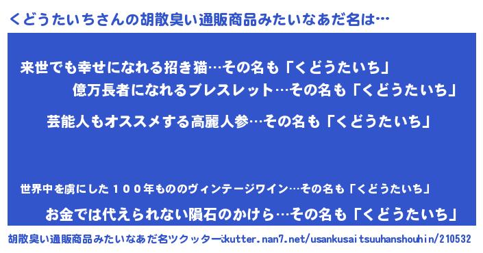 | 肩書あだ名 | 『くどうたいち船長』『くどうたいち閣下』 |