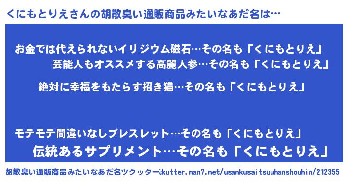 | 肩書あだ名 | 『くにもとりえ中佐』『くにもとりえ校長』 |