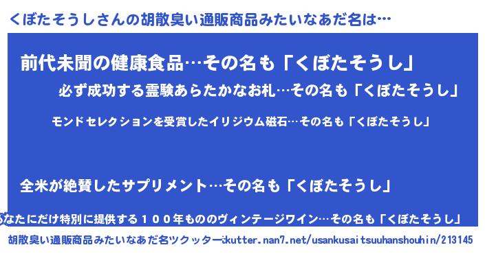 | 伝説のあだ名 | 『救世主となる占い師くぼたそうし』 |