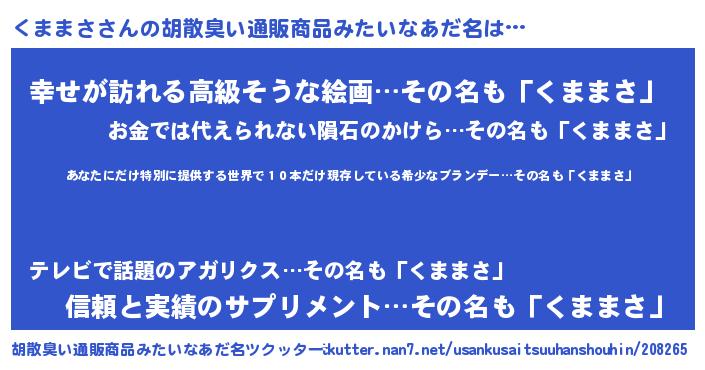 | ヒーロー風カッコイイあだ名 | 『仮面クマダー』『ウルトラくままさマン』 |
