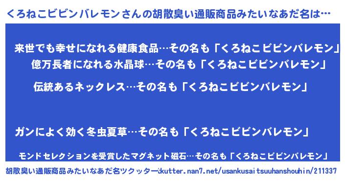 | 男性向けラノベタイトル風あだ名 | 『ダンジョンにくろねこビビンバレモンを求めるのは間違っているだろうか』 |