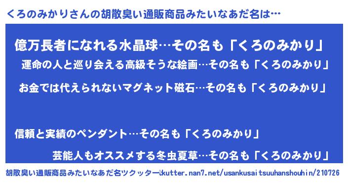 | ヒーロー風カッコイイあだ名 | 『愛の使者くろのみかり』『黄金騎士クロ』 |