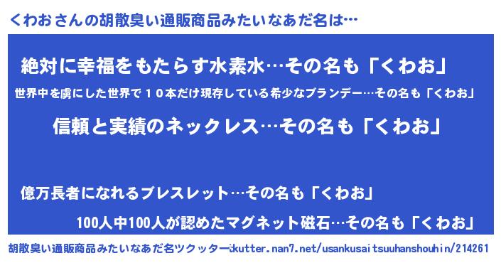 | 意味不明あだ名 | 『とにかく怪しいくわお』 |