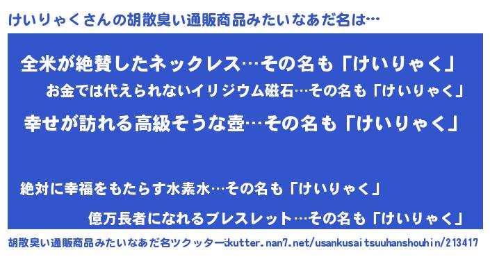 | 女子向けラノベタイトル風あだ名 | 『けいりゃくの雑貨屋さん』 |