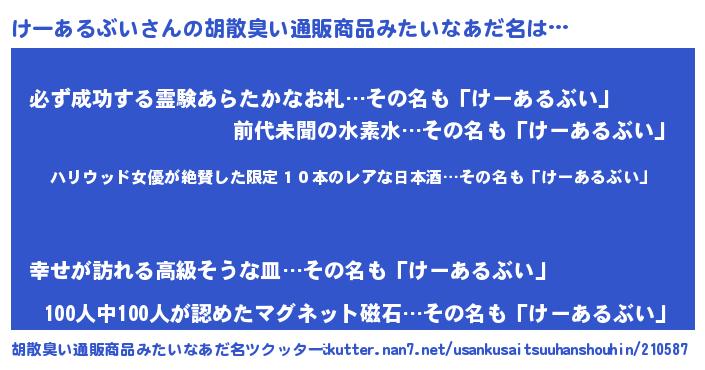 | ヘコむあだ名 | 『けーふぇ~』『けーあるぶい(震え声)』 |