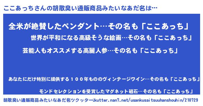 | 肩書あだ名 | 『ここあっち閣下』『ここあっちリーダー』 |