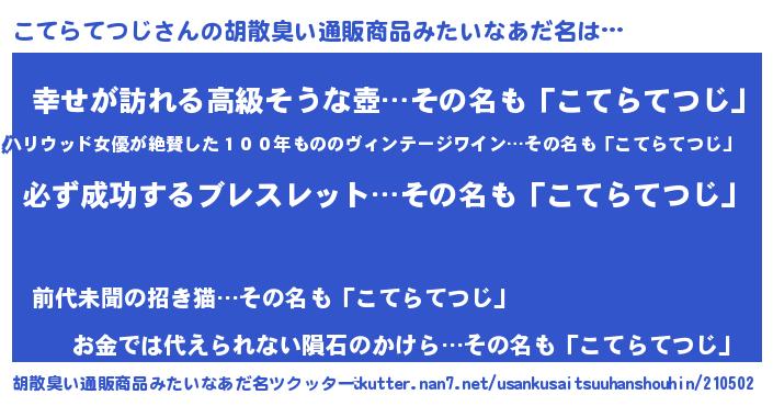 | 肩書あだ名 | 『こてらてつじ大佐』『こてらてつじCEO』 |