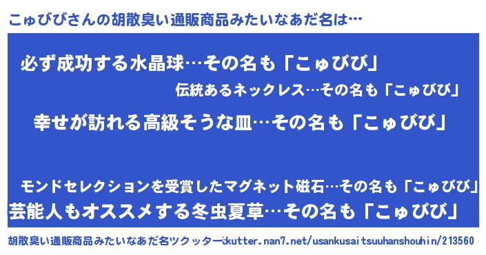 | 意味不明あだ名 | 『こゅびびフォーエバー』『自称こゅびび』 |