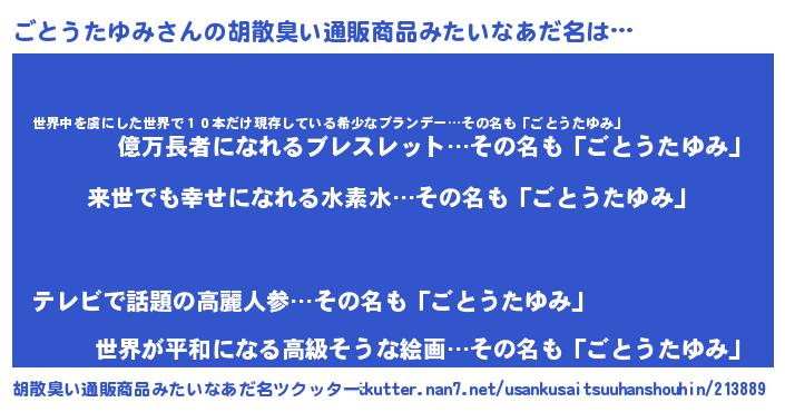 | ヘコむあだ名 | 『ごとうたゆみ(震え声)』『なまこ酢』 |