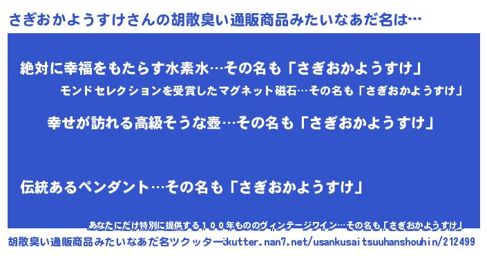 | 意味不明あだ名 | 『さぎおかようすけフォーエバー』 |