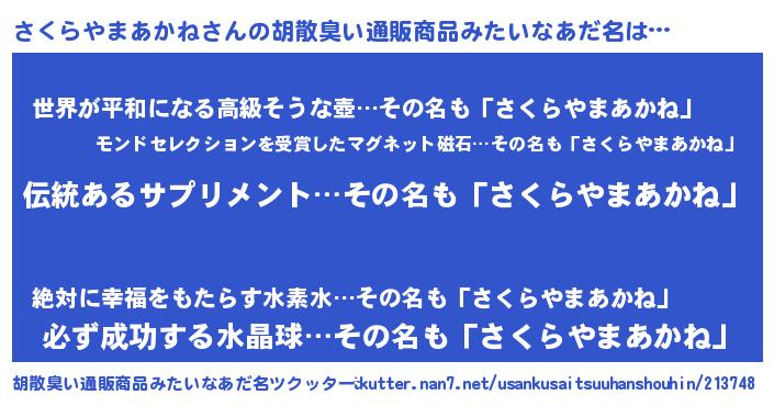 | 意味不明あだ名 | 『とにかく怪しいさくらやまあかね』 |