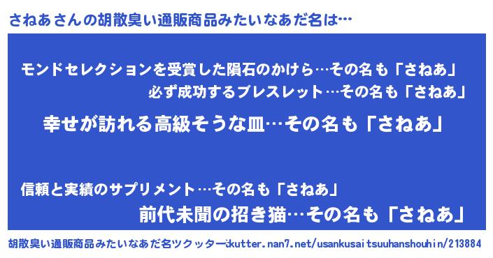 | 意味不明あだ名 | 『エリンギ科さねあ属』『永久保存さねあ』 |