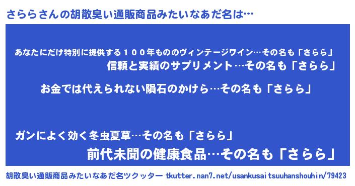 | 男性向けラノベタイトル風あだ名 | 『ノーゲーム・ノーサララ』 |