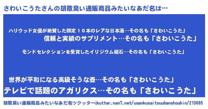 | 意味不明あだ名 | 『眠気覚ましガムさわいこうた味』 |
