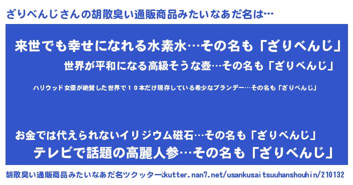 | 意味不明あだ名 | 『住所不定無職ざりべんじ(91歳)』 |