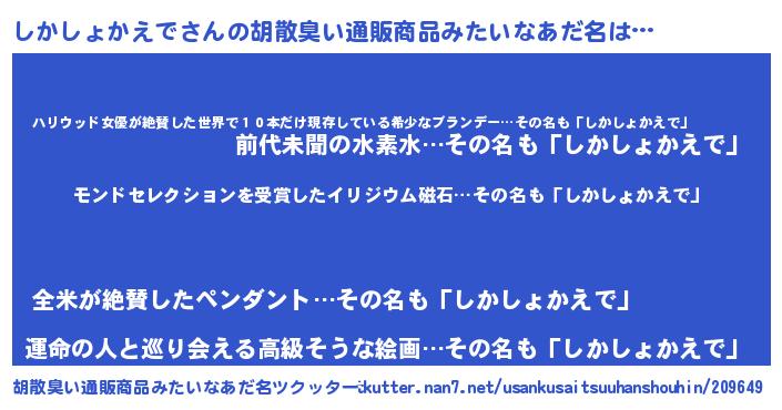 | 伝説のあだ名 | 『救世主となる占い師しかしょかえで』 |