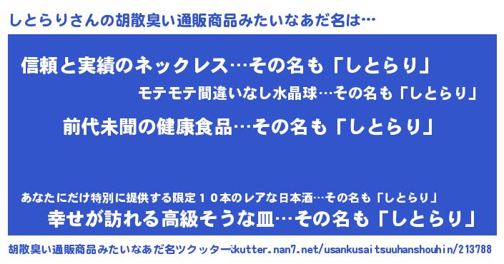 | ヘコむあだ名 | 『しとらり(爆)』『しと太郎』『牛乳』 |