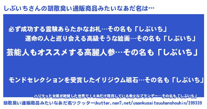 | ヒーロー風カッコイイあだ名 | 『究極戦士シブイチ』『スーパーシブイチ』 |