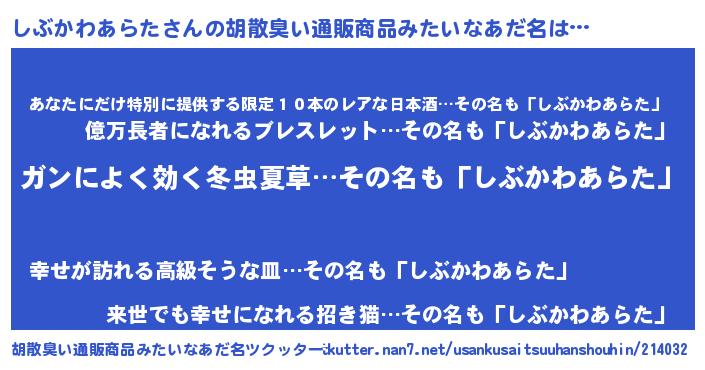| ヒーロー風カッコイイあだ名 | 『ウルトラ戦士シブカワアラタ』 |