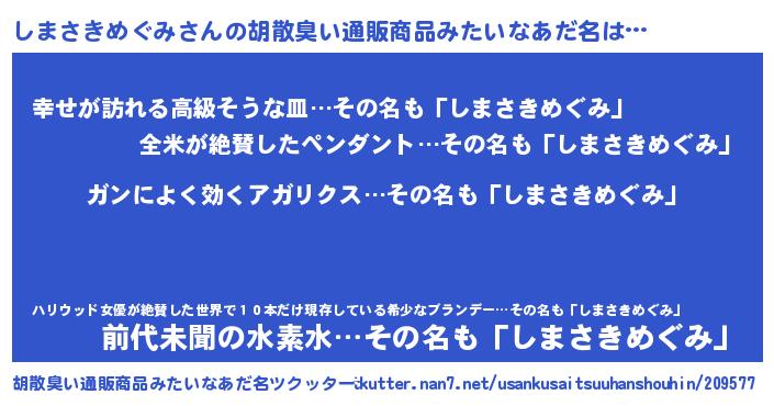 | 意味不明あだ名 | 『自称しまさきめぐみ』 |